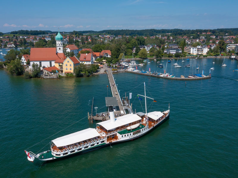 Wasserburg am Bodensee ist ein idyllischer Urlaubsort und idealer Ausgangspunkt für zahlreiche Ausflüge. Die historische Halbinsel beeindruckt mit der Kirche St. Georg, dem barocken Schloss und dem Fischereimuseum, das spannende Einblicke in die regionale Geschichte bietet.
